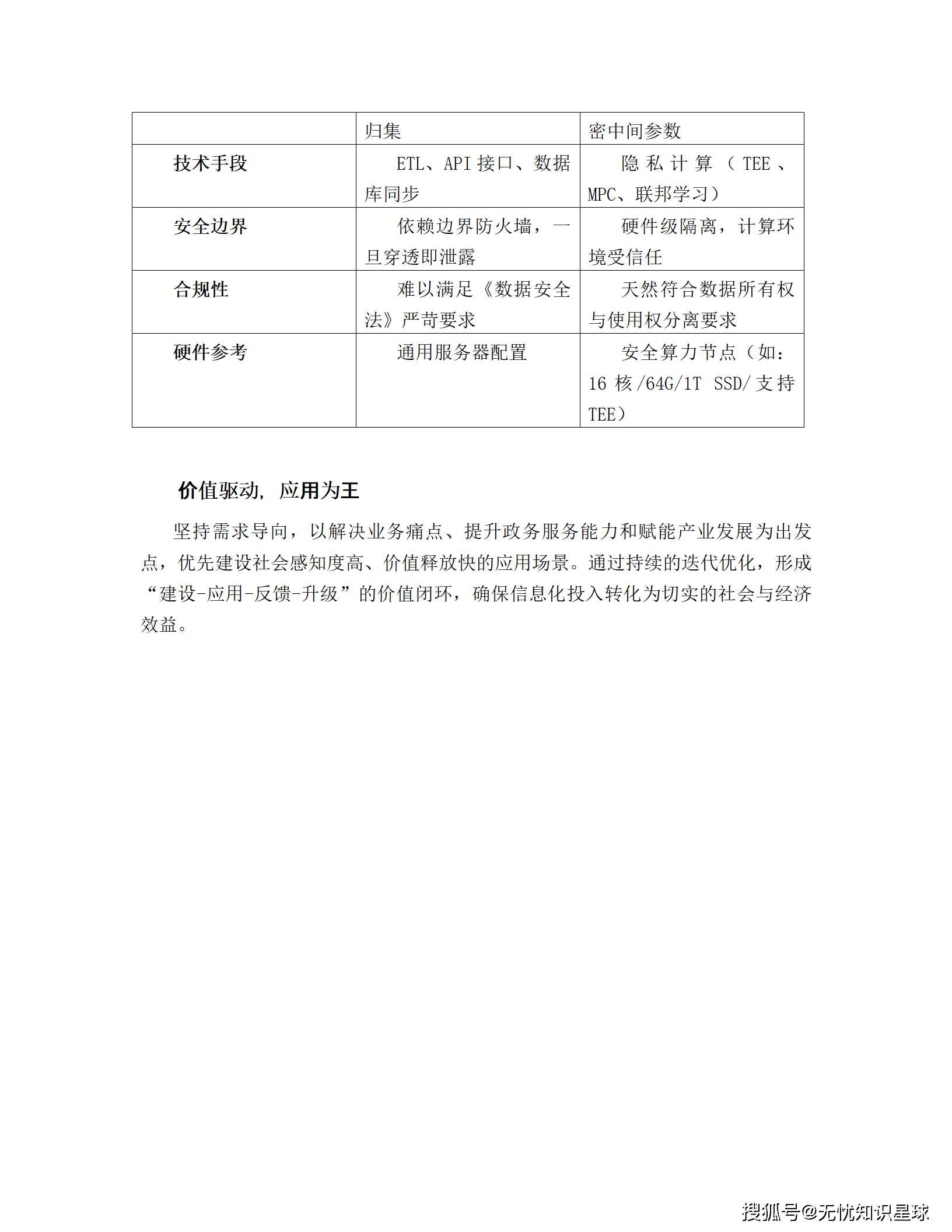 - 原始数据不出域,数据可用不可见:技术架构由"物理汇聚"转向"逻辑汇聚",通过隐私计算节点实现安全计算。