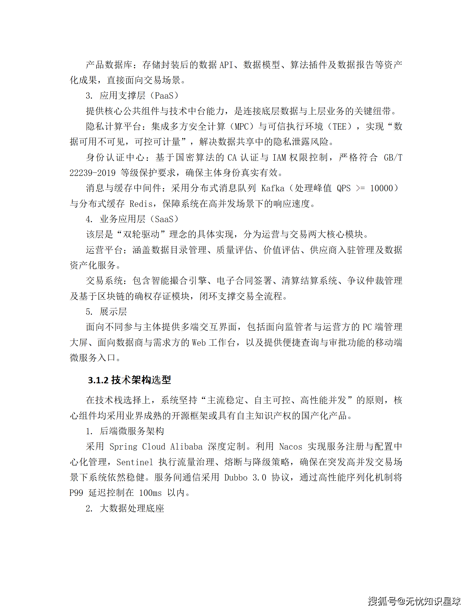 - 应用支撑层(PaaS) :提供核心公共组件,包括隐私计算平台、身份认证中心、消息与缓存中间件。