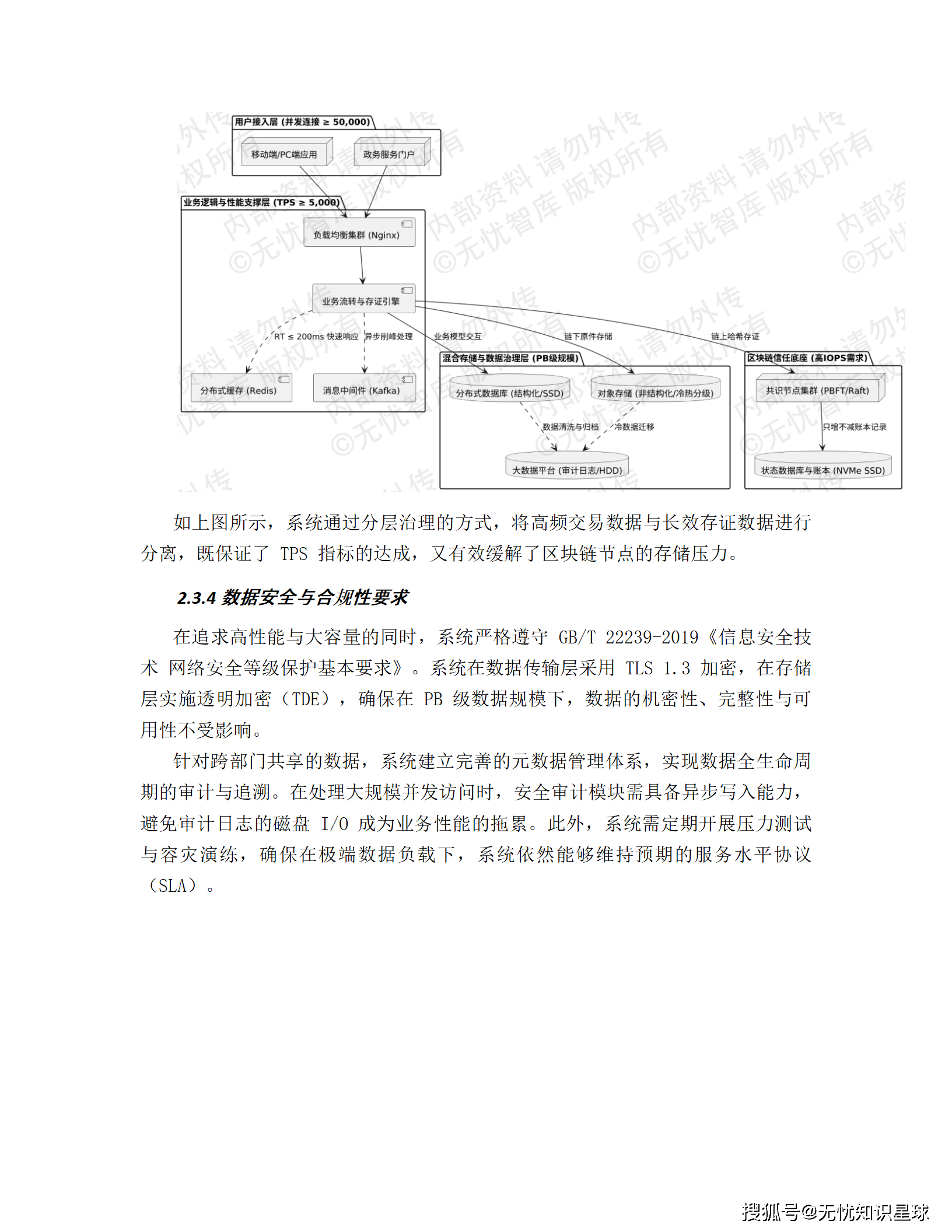 - 基础设施层(IaaS):依托政务云,提供弹性计算、存储及网络资源,并部署分布式区块链节点网络。