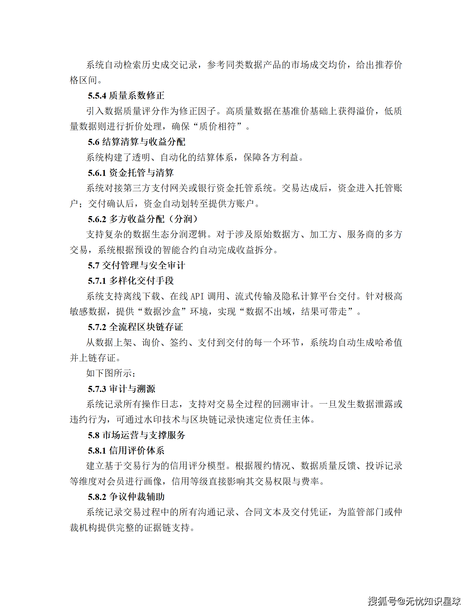 - 构建"一系统":数据要素交易系统功能定位 :覆盖数据登记、上架、撮合、签约、结算、交付及评价的全生命周期。信任机制 :应用区块链技术建立数据确权与溯源机制,确保交易全过程留痕、抗篡改。价值发现:深度集成数据估值模型,辅助市场主体科学定价。