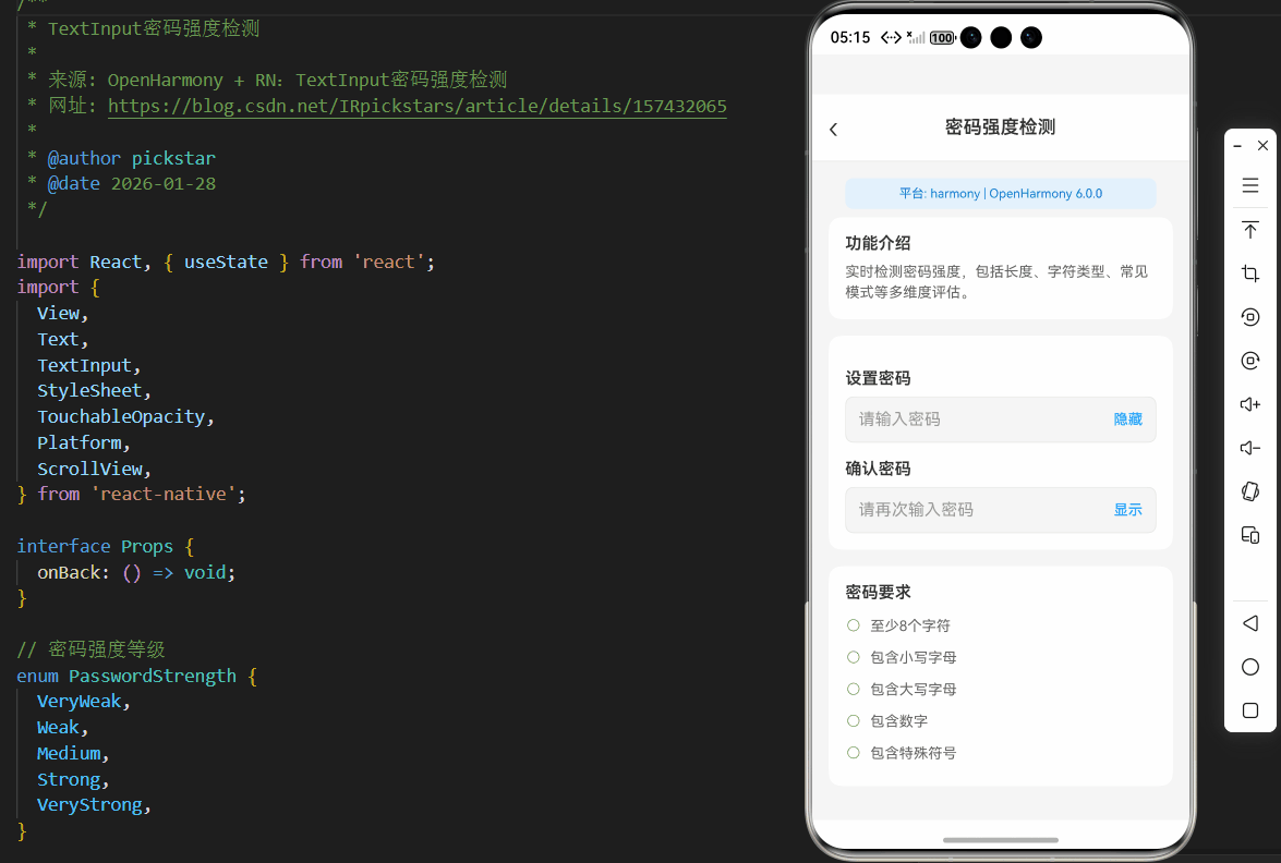 OpenHarmony + RN:TextInput密码强度检测