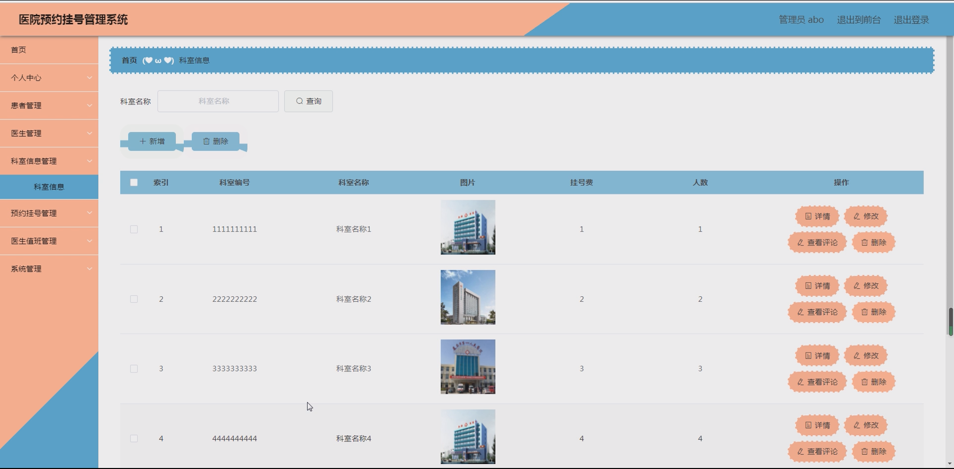 5.2 科室信息管理模块