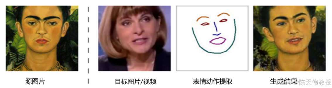 展示了人脸控制的基本流程:首先,从"目标"图片或视频中提取出表情和动作特征,然后将这些特征应用到"源"图片中,从而生成具有相同表情和动作的图片或视频。