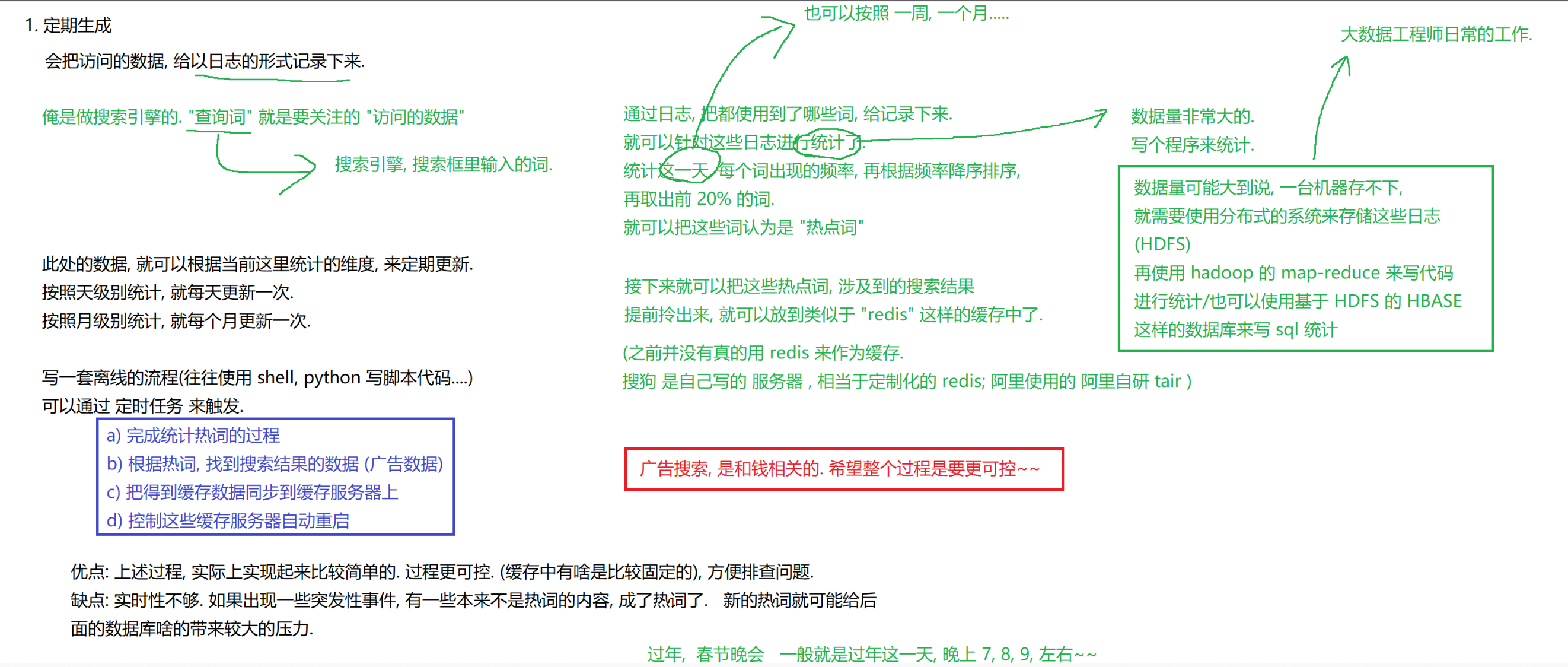 - 缺点:实时性不足,当遇到一些突发事件,平时不常用的词成热词了,这个热词因为更新不及时,缓存命中不了,从而导致数据库压力过大