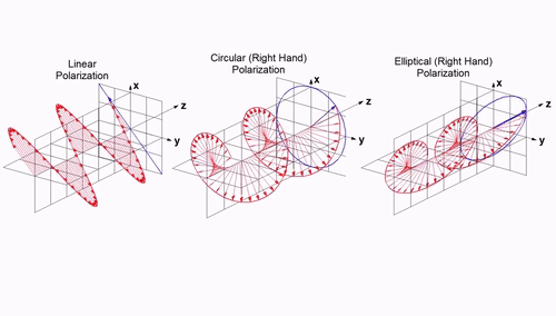 常用的是线极化,以前一直觉得电磁波的螺旋结构有点不可思议,不太好去想象,后来才发现电磁波其实就是螺旋着前进的(对于圆极化来说)上图