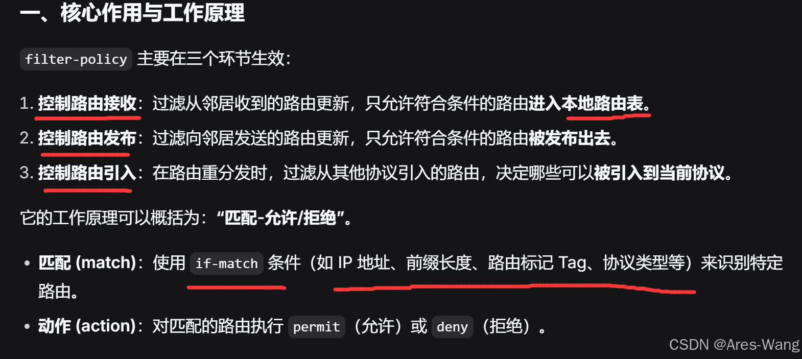 **filter-policy(过滤策略)**是一个非常重要的路由过滤工具