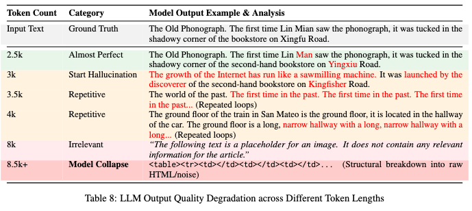 在 DeepSeek-OCR 中,随着需要还原的输入文本(Input Text)变长、对应的解码 token 序列变长,模型的输出质量会系统性退化,说明其高性能并非来自稳定的视觉识别,而是越来越依赖语言模型的语言先验。