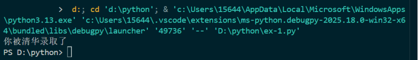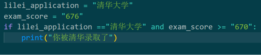 小红报考志愿为 "清华大学",高考分数为 676 分,若志愿匹配且分数大于 670 分,则判定 "被录取"。