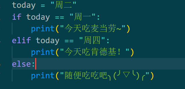 elif today == "周四": # 条件2:是否为周四(不成立)