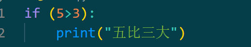 判断 "5 是否大于 3",若是则打印 "五比三大"。