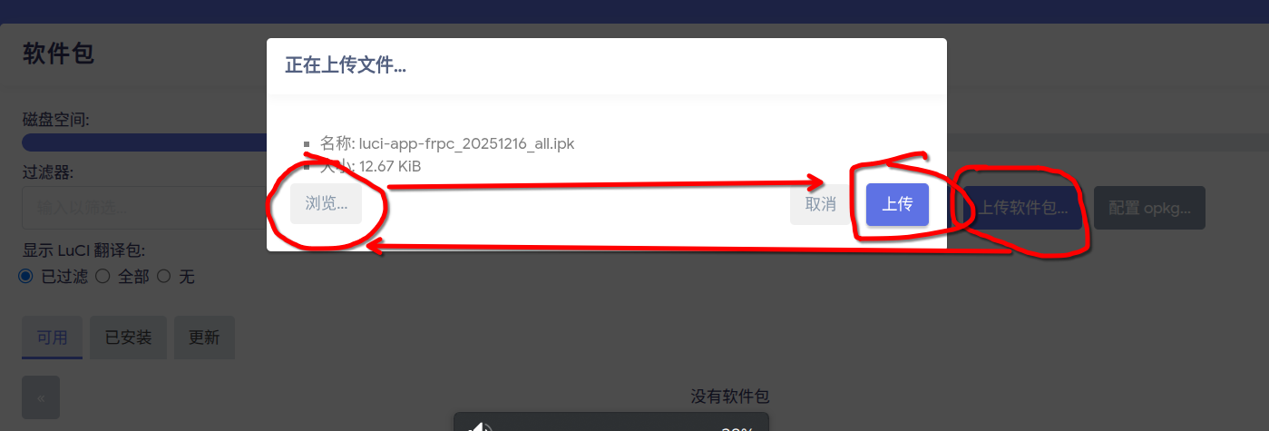 apk格式安装命令 apk add --allow-untrusted luci-app-frpc.apk