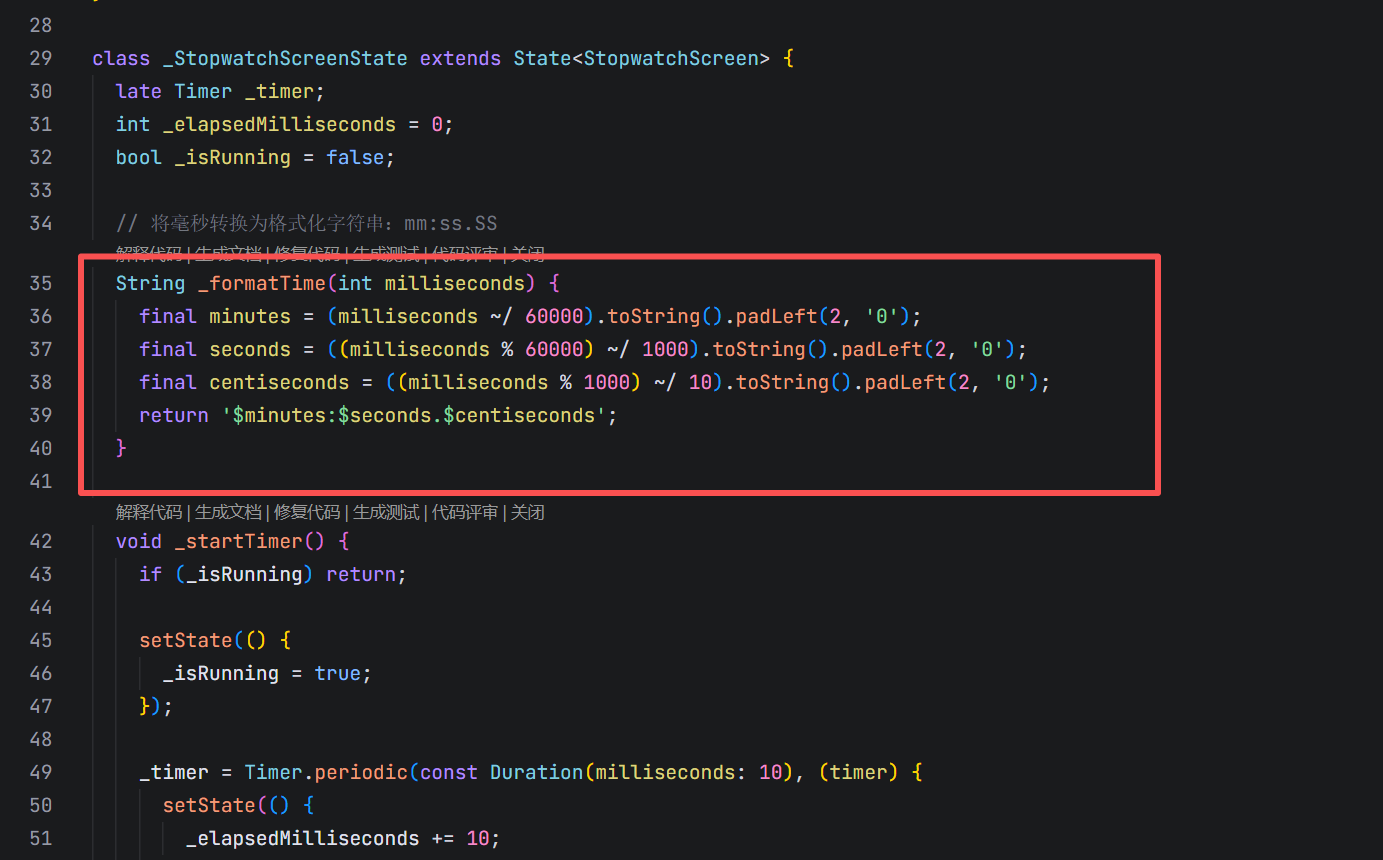 | 百分秒 | (milliseconds % 1000) ~/ 10 |