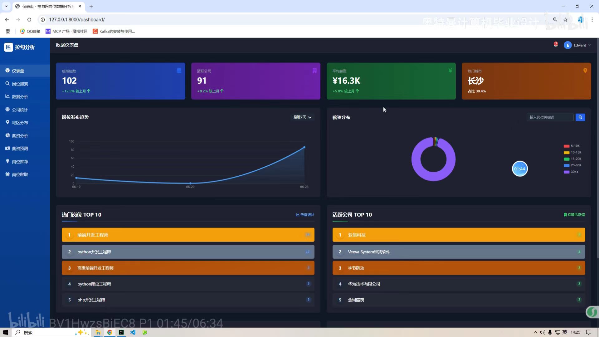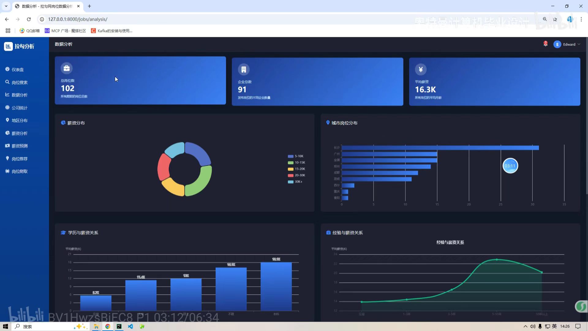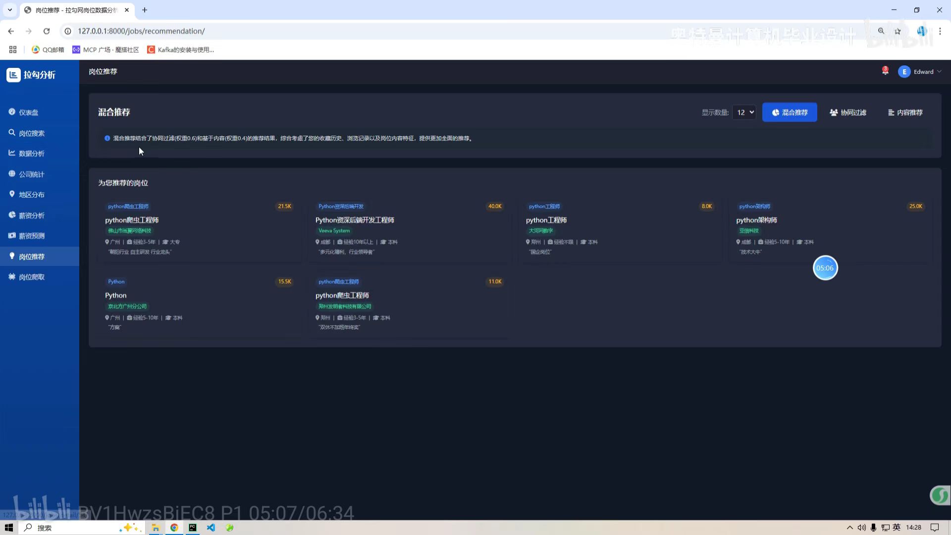 本项目以招聘领域多维度结构化数据为核心研究对象,旨在整合Python 数据处理、MySQL 数据存储、Echarts 可视化及智能算法技术,构建一套功能完整的招聘数据分析可视化预测推荐系统,实现招聘数据的标准化清洗与多维度统计分析,通过可视化手段直观呈现市场招聘规律,利用机器学习算法精准预测岗位需求、薪资波动等核心市场趋势,基于协同过滤推荐算法实现人岗双向精准匹配,最终为求职者提供个性化岗位推荐、为企业提供数据化招聘决策支持,解决招聘场景中信息不对称、匹配效率低的核心问题,全面提升招聘全流程的智能化与高效化水平。