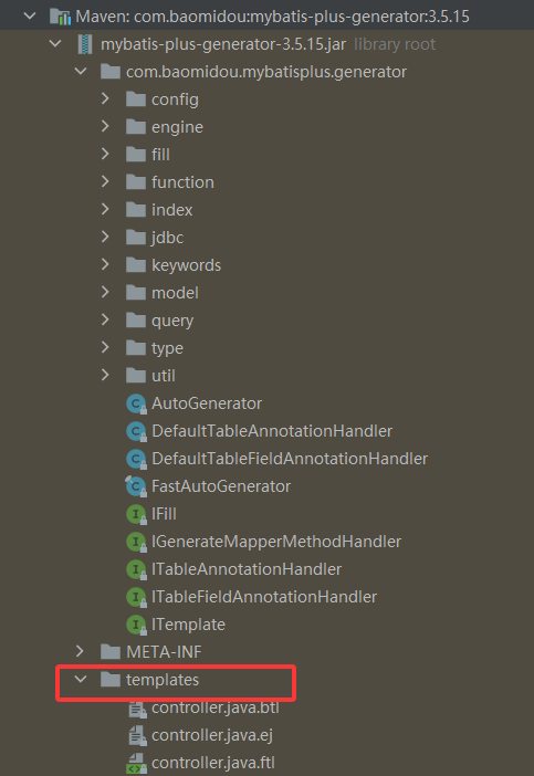 默认使用库包中的模版文件,需要使用自定义模版时,在resources目录下定义同名模版文件可替换