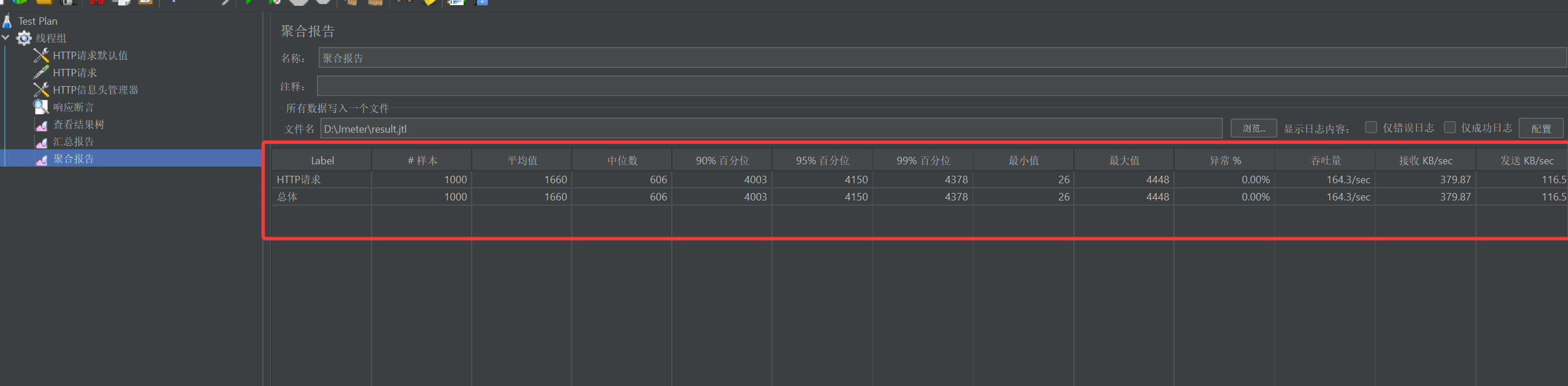 聚合报告(Aggregate Report):平均时间、吞吐量、错误率