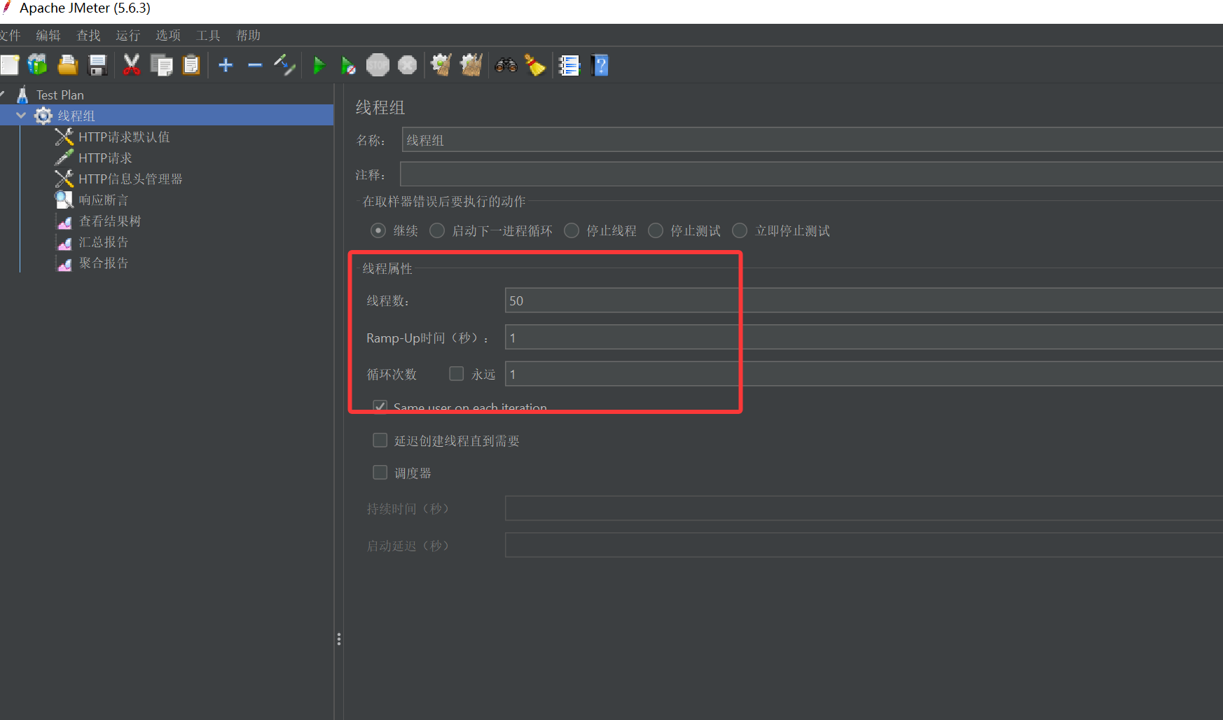 | 循环次数 | 每个线程执行请求次数 | 1 |