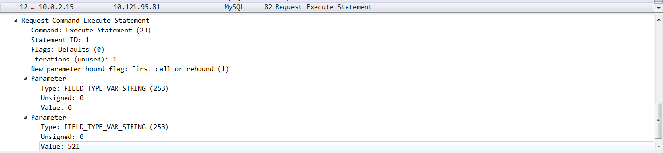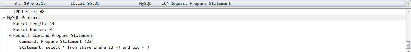 PDO有一项参数,名为PDO::ATTR_EMULATE_PREPARES ,表示是否使用PHP本地模拟prepare,此项参数默认true,我们改为false后再抓包看看。