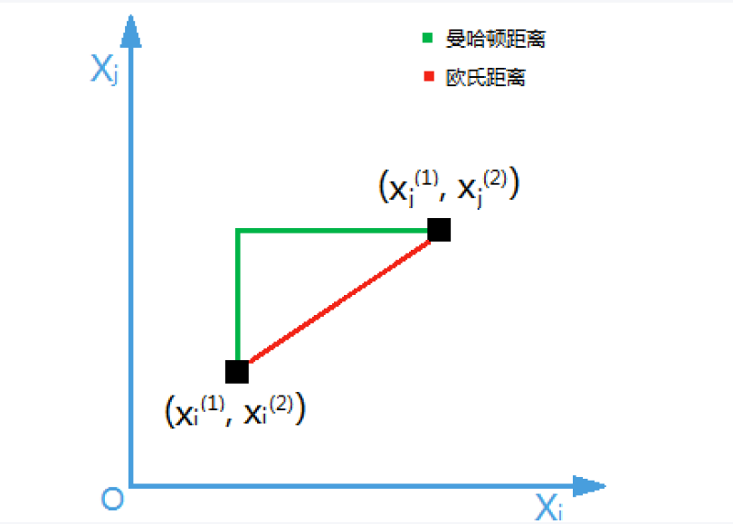 欧式距离与曼哈顿距离的区别: