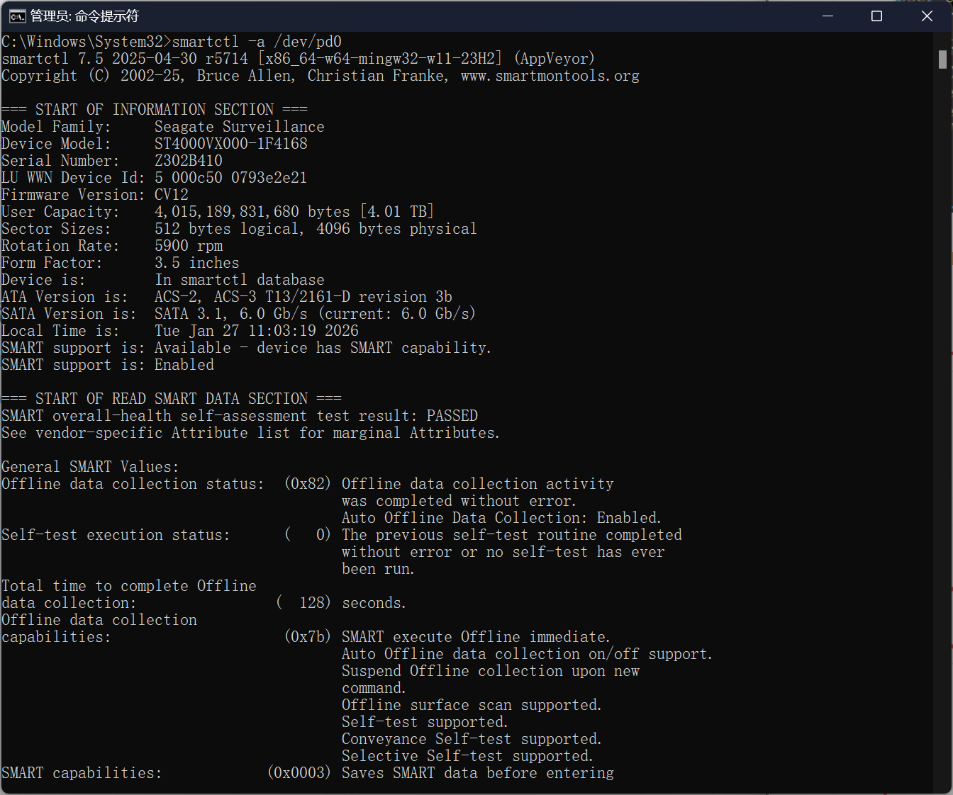 SMART support is: Enabled # 已启用SMART功能
