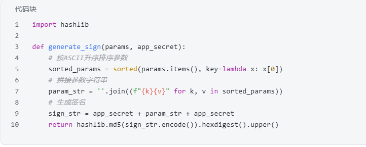 签名(sign)是接口调用的核心安全校验项,生成步骤如下: