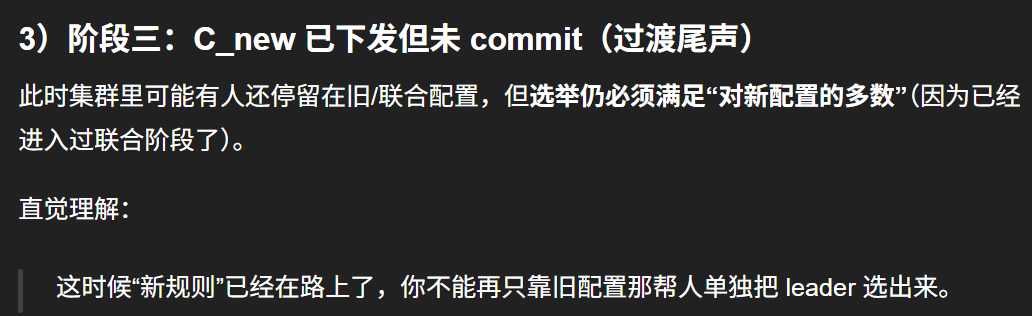 阶段3:仍然按"旧多数 + 新多数"(直到新配置 commit)