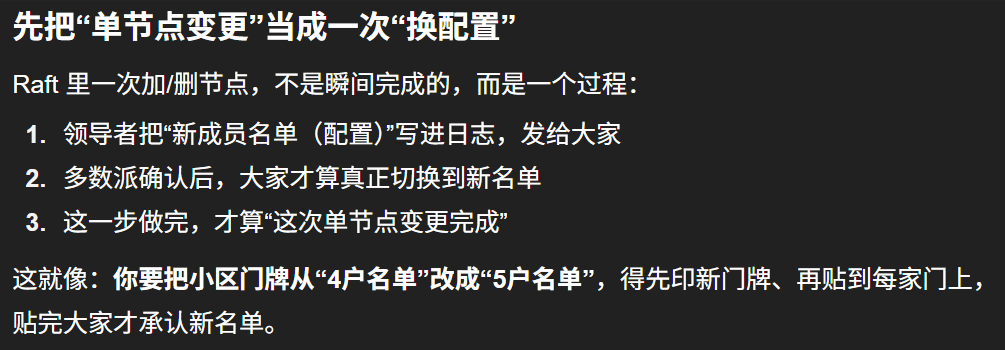 6.3.2.1 单步成员变更法为什么可以解决集群节点变更带来的脑裂问题呢?