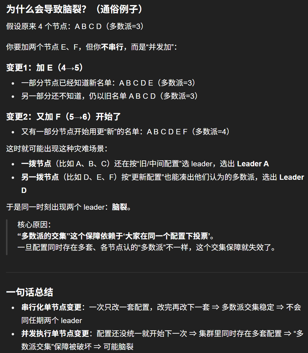 - [6.3.2.1 单步成员变更法为什么可以解决集群节点变更带来的脑裂问题呢?](#6.3.2.1 单步成员变更法为什么可以解决集群节点变更带来的脑裂问题呢?)