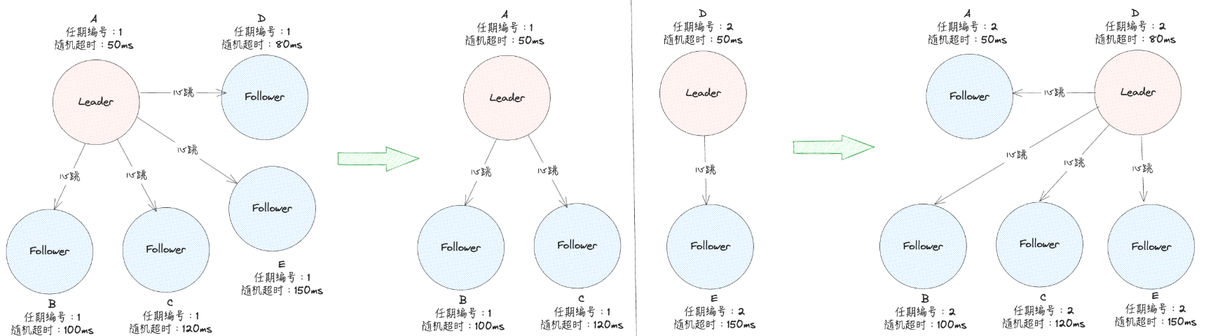Raft算法中的随机超时有以下两种情况: