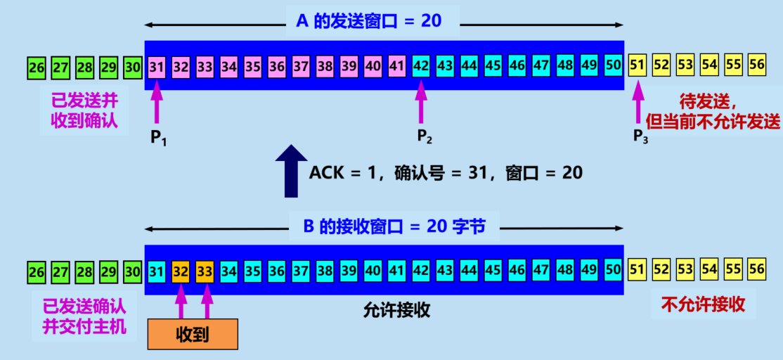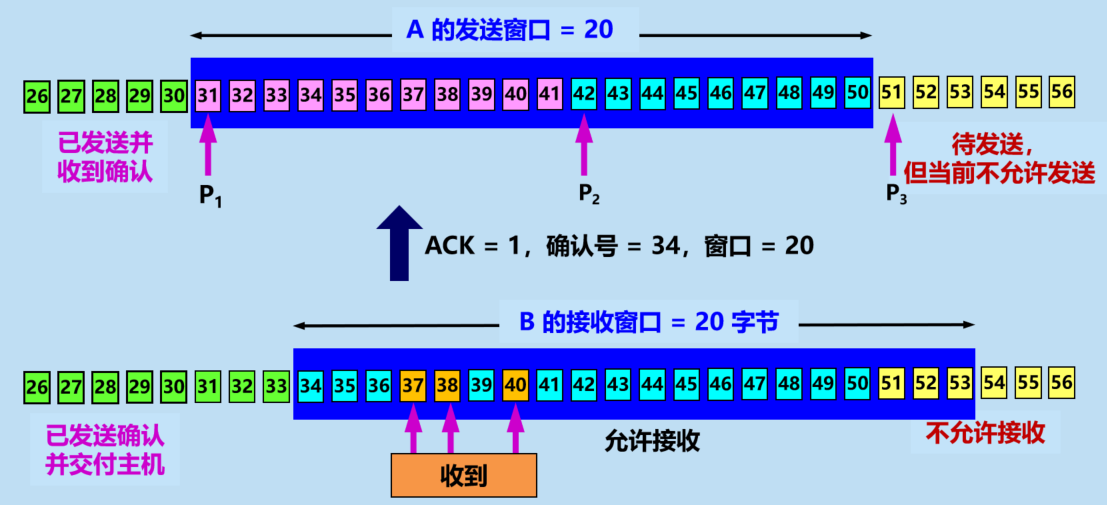- A 根据 B 给出的窗口值, 构造出自己的发送窗口
