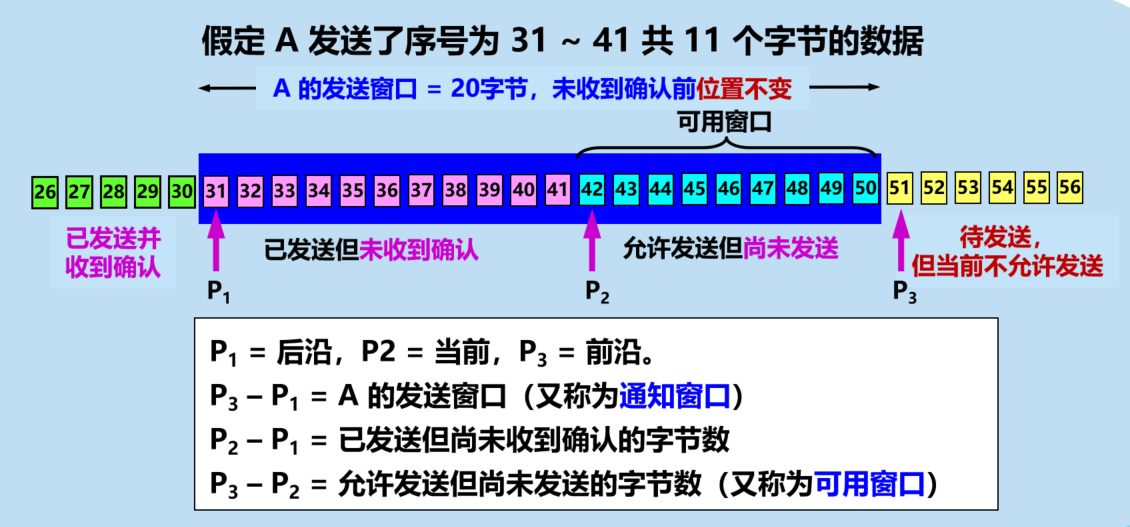 - 发送窗口里面的序号表示允许发送的序号