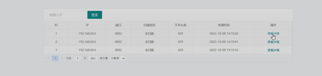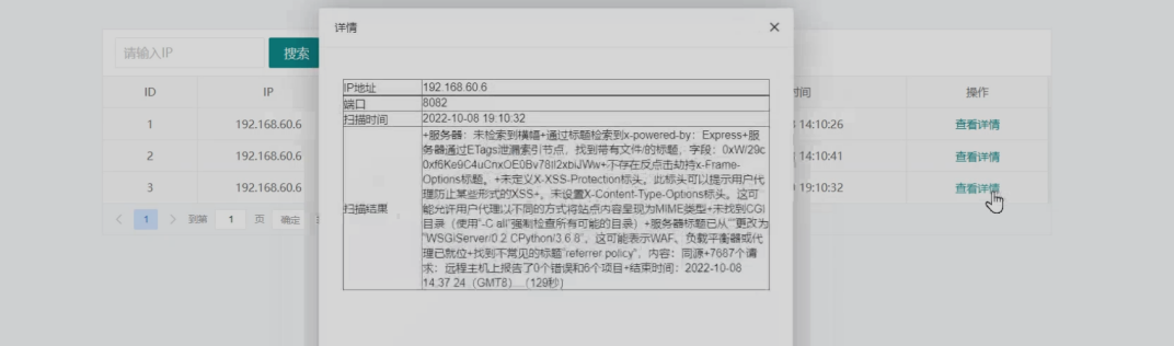 扫描列表中,也有已经扫描过的ip、端口的内容列示,用户可以通过点击查看详情来进行详细的详细结果。