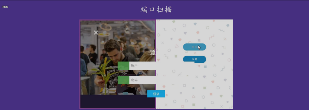 此次设计的漏洞扫描系统的登录页面展示如下,登录中会有直接登录和注册的选项,第一次使用该系统的管理员用户需要进行系统的注册操作。
