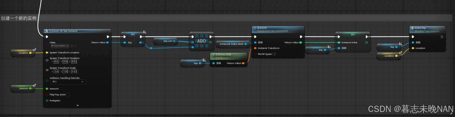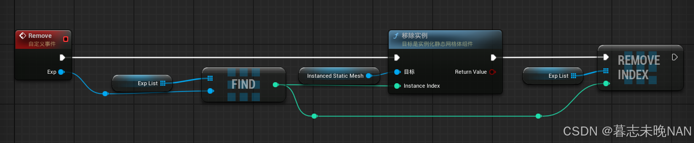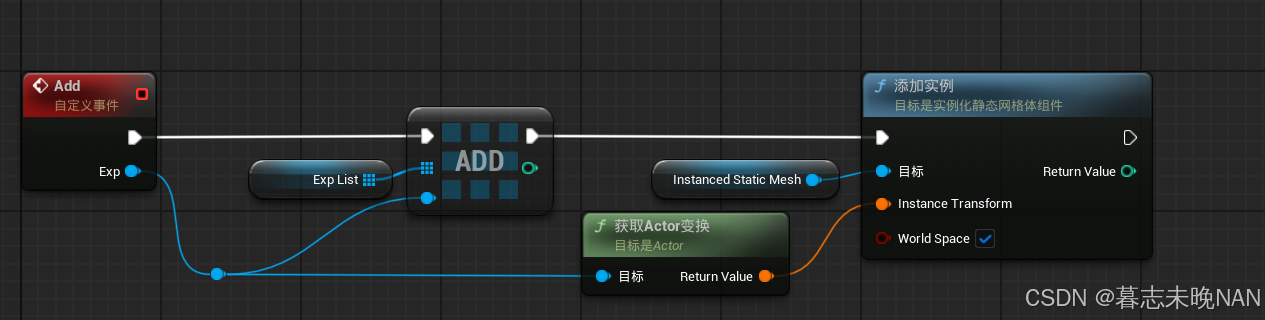 正常使用我们不可能就使用一个模型,那是没有意义的,这里我使用方式是,Actor的实例不带模型,而是通过网格体实例管理器创建,所以有了以下节点