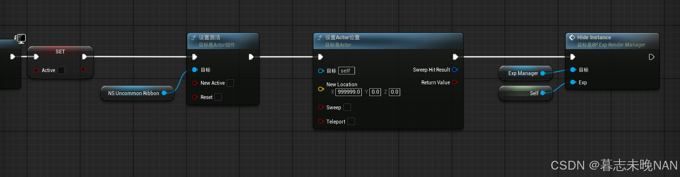 在Actor生命周期结束时,我们将不再销毁实例,而是设置值,将其设置为空闲状态,并且不能够被角色获取到,所以,将其位置移动到了特别远的位置