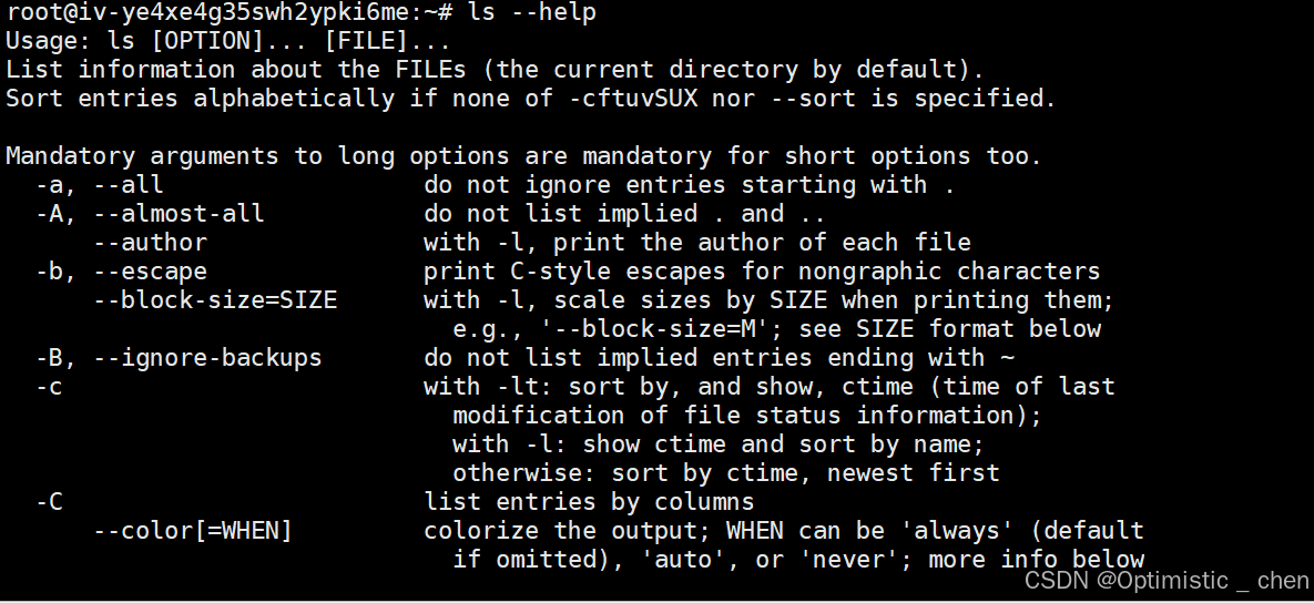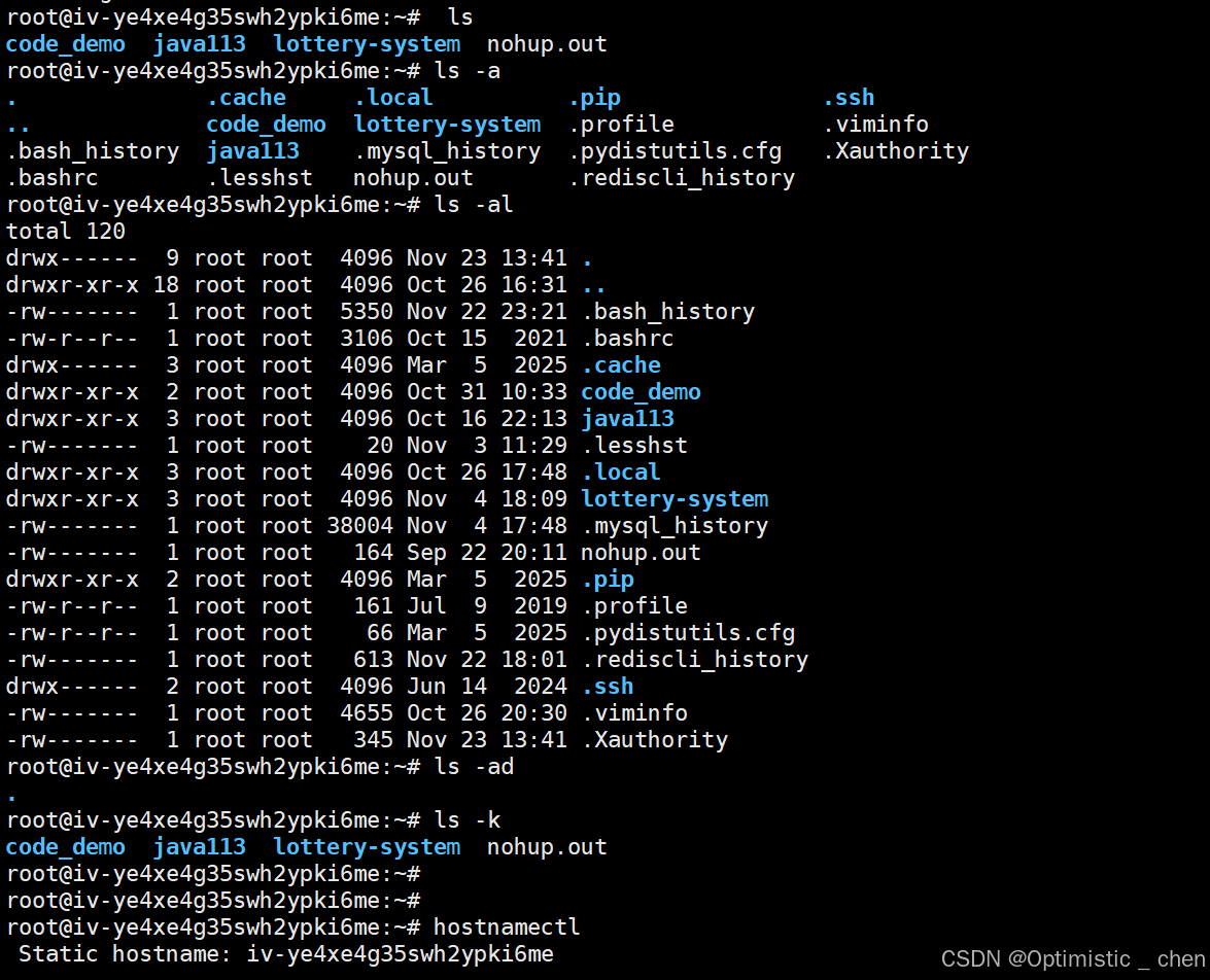 - -a:列出⽬录下的所有⽂件,包括隐藏文件(以
