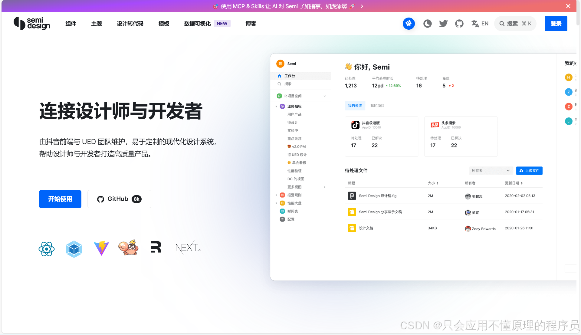 飞书项目是基于Semi Design 设计系统搭建的。Semi Design 由字节跳动抖音前端与 UED 团队设计、开发并维护的企业级别设计系统,遵循全面、易用、优质的设计原则,帮助设计师与开发者打造高质量产品。