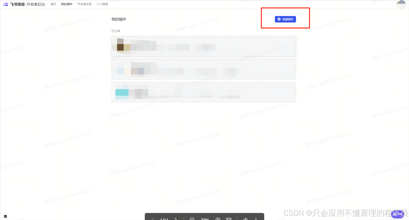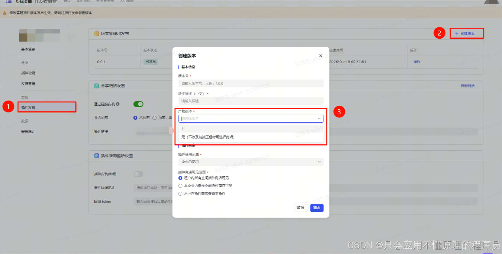 在飞书开放平台上创建一个新的应用,获取 Plugin ID 和 Plugin Secret等关键信息,并初始化项目。