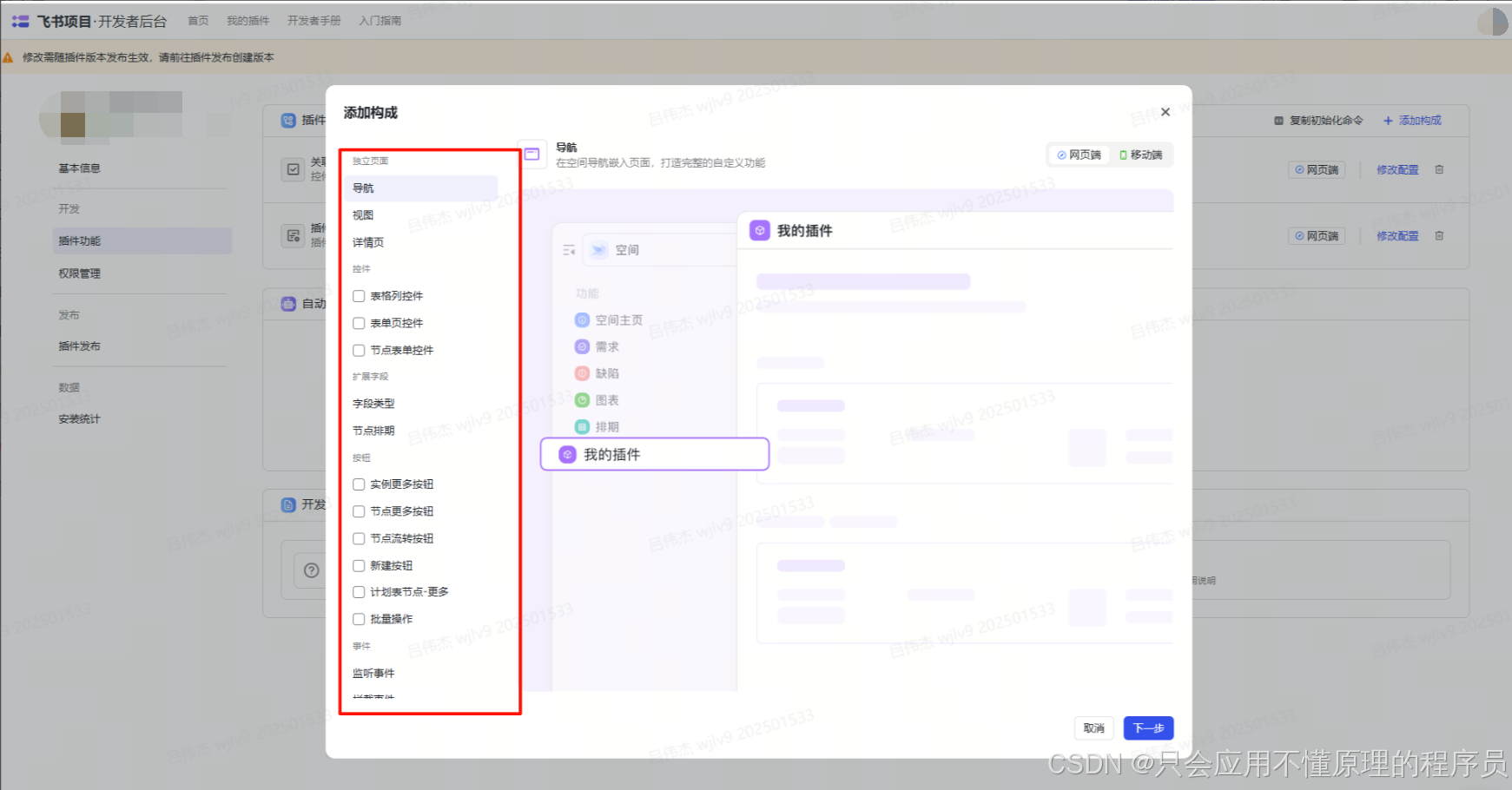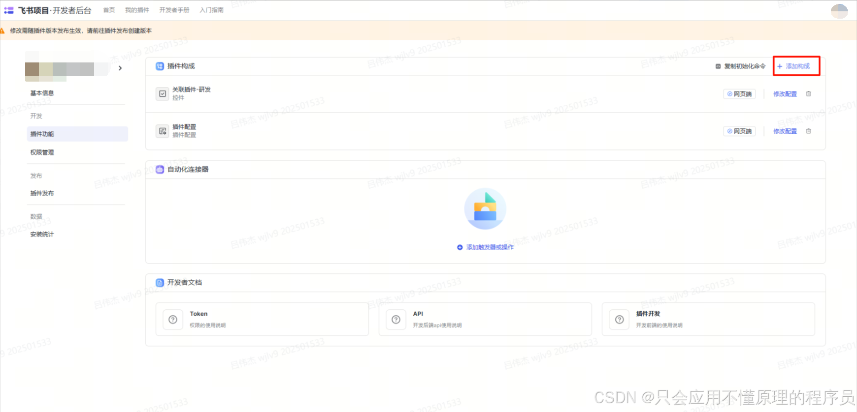根据需求在开放平台配置的插件功能里添加构成,例如: