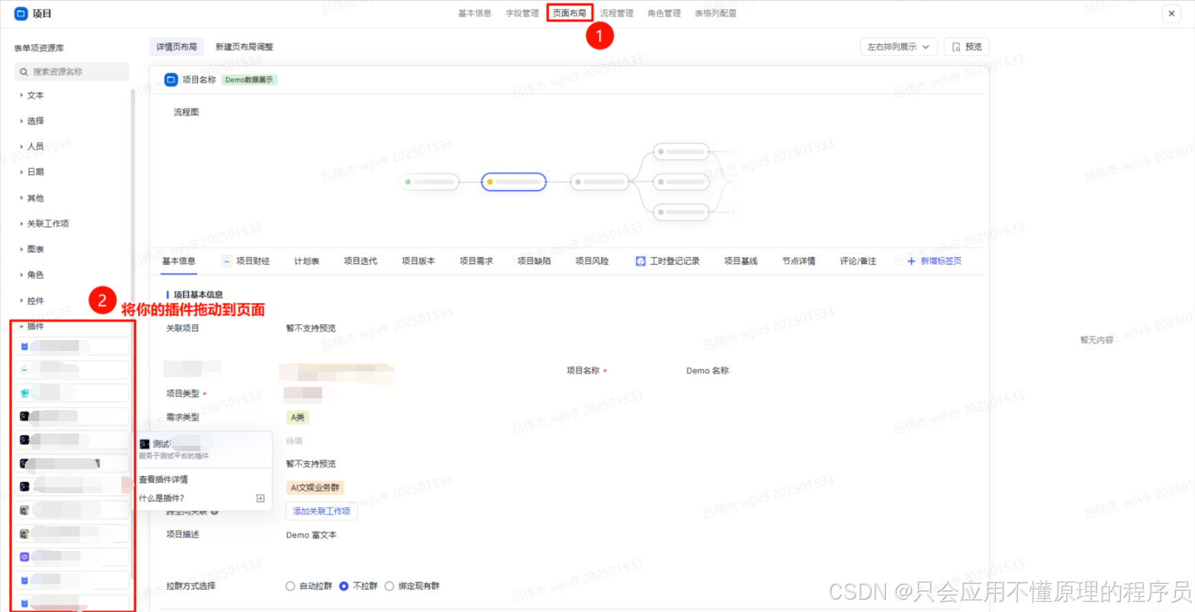 配置插件:以控件为例,首先要在空间配置里的页面布局添加插件。