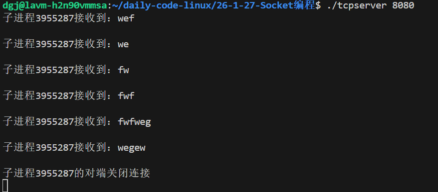 cout<<"子进程"<<getpid()<<"的对端关闭连接"<<endl;