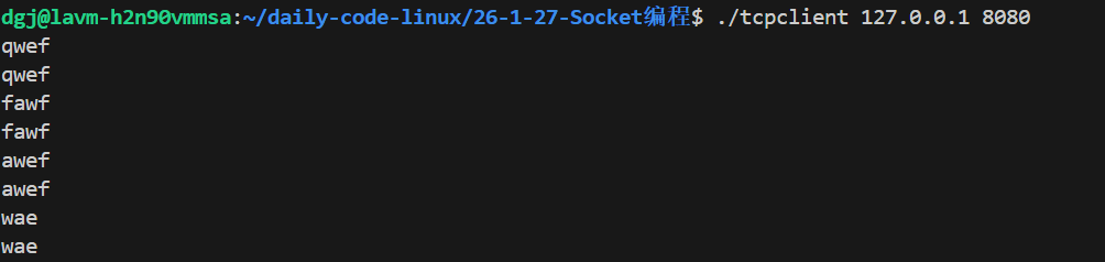 对于黏包问题,最好解决的方式,就是在发送数据头部加上一个固定字节长度的数据,这样每次读取数据会先看数据长度,然后拿取对应长度的数据报做解析,这里我就不实现了。以免为大家增加理解负担。但是这个是很重要的东西。