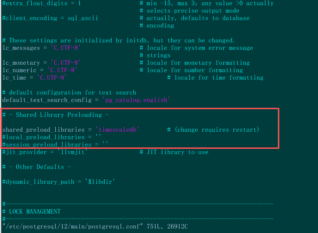 /etc/postgresql/12/main/postgresql.conf文件启动该扩展,修改之后重启下 postgresql。
