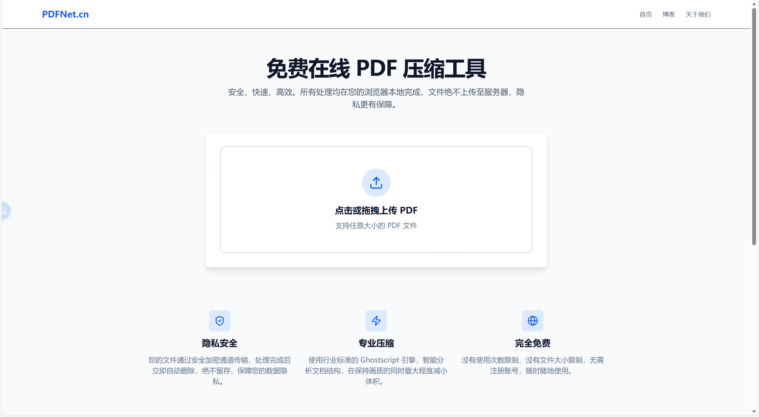 👉 在线体验地址:PDFnet - 免费在线PDF压缩工具