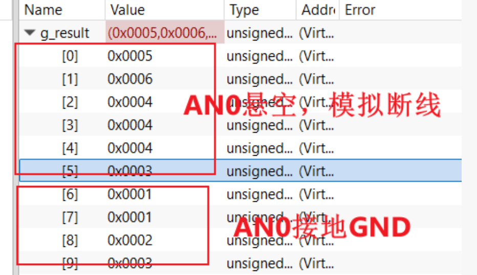 因此你测试ADC功能时候,需要根据你ADC外围器件的电压进行选择内部BWD的方式,这样才能够有效检测,例如内部BWD PU,外部sensor Low;内部BWD PD,外部sensor High;