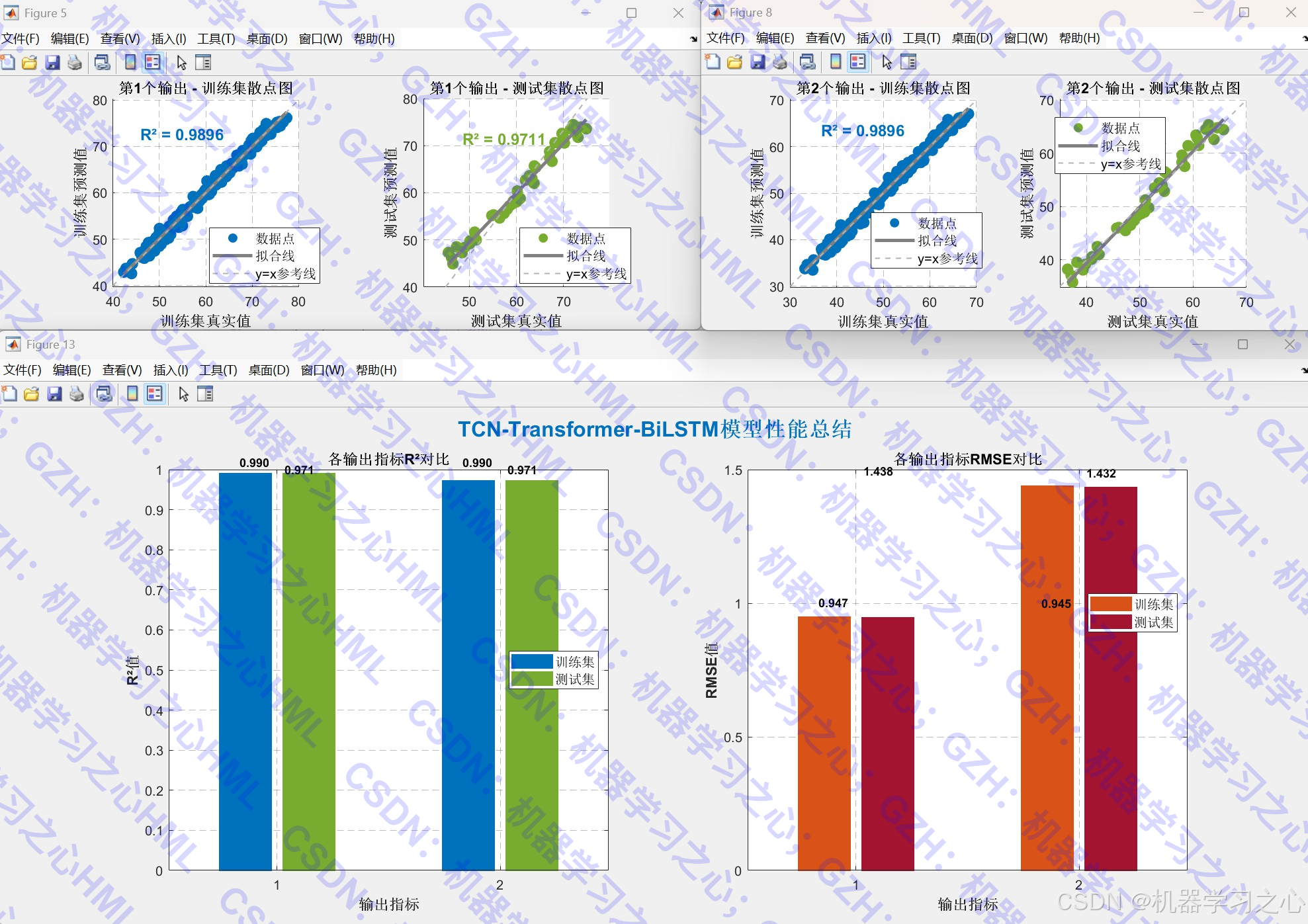 - 可视化分析:包括预测对比图、误差图、散点图、性能总结图等。