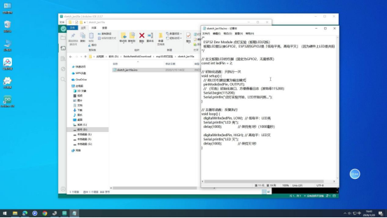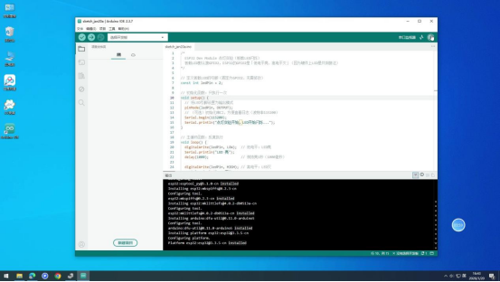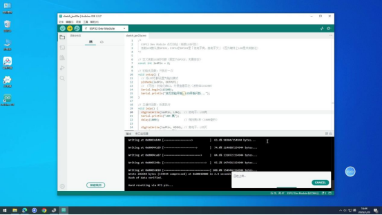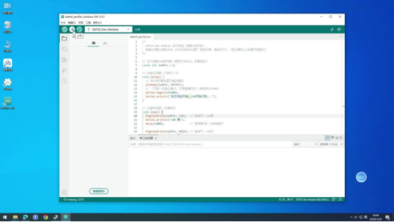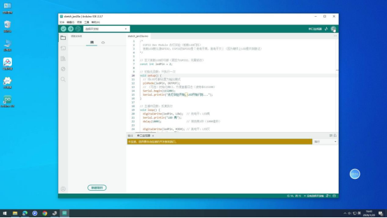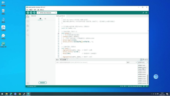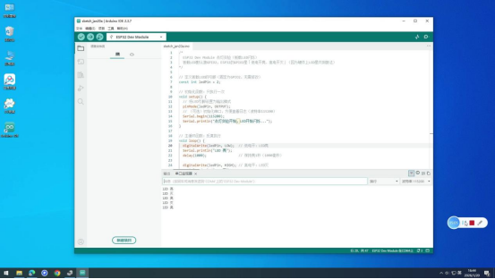 操作说明:先编译代码检查语法错误,无错误后上传至ESP32开发板,实现点灯功能。