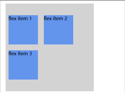 弹性项目向行尾紧挨着填充。第一个弹性项的main-end外边距边线被放置在该行的main-end边线,而后续弹性项依次平齐摆放。