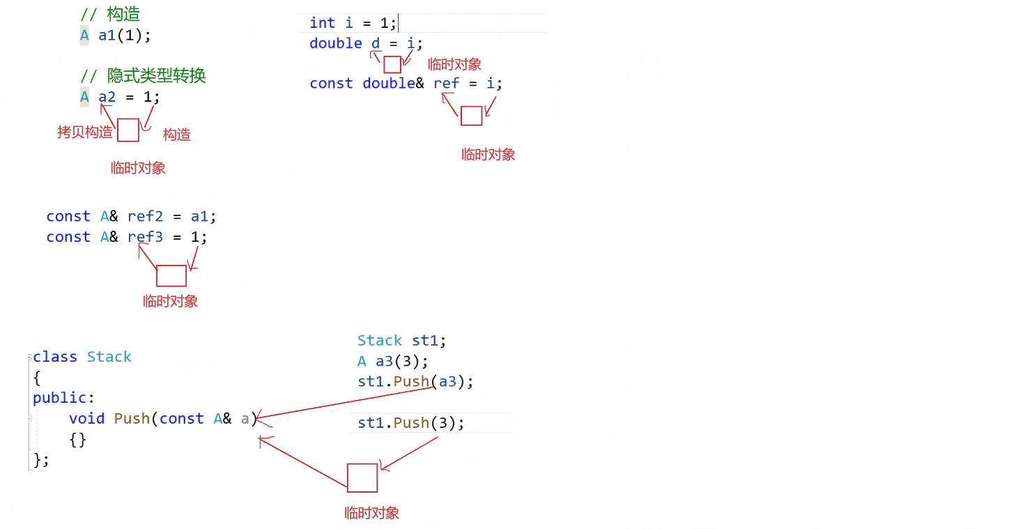 • const 引用会延长匿名对象的生命周期,使其生命周期跟const 引用一样。