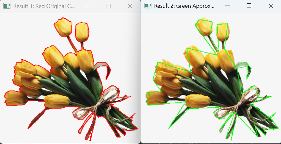 cv2.namedWindow("Result: Red Original Contour + Green Approx Contour", cv2.WINDOW_NORMAL)