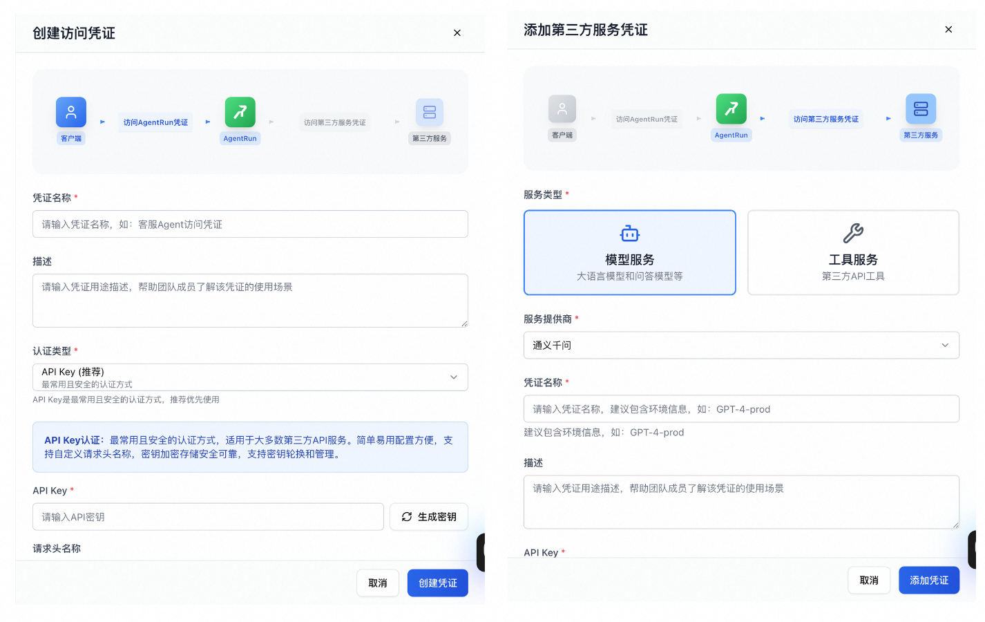 函数计算 AgentRun 的凭证管理在两个关键场景发挥作用,展示了从理论到实践的完整闭环。